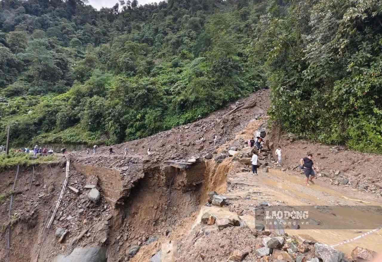 Sạt lở nghiêm trọng trên đèo Khau Phạ chia cắt Quốc lộ 32 qua địa bàn tỉnh Lào Cai. Ảnh: Ngọc Sơn