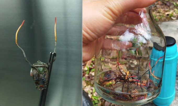 Các mẫu nghiên cứu về đông trùng hạ thảo bọ xít của Vườn quốc gia Hoàng Liên. Ảnh: N.H